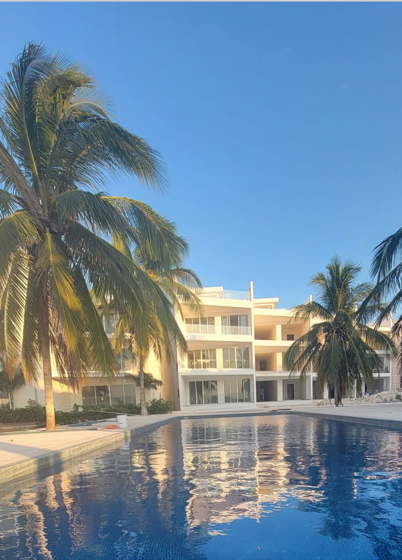 Welcome to the peaceful fishing village of San Crisanto, Yucatán! Our beautiful new condo is located on the beach at the West end of this quaint community. It is a stylishly designed 1500+ square-foot, three bedroom, two full bathroom condo with over 300 ft.² of private rooftop terrace for your enjoyment. The terrace offers amazing gulf views as well as a small soaking pool and an outdoor kitchen area. The living area faces the sea, with a large patio. The third floor sea views are amazing!